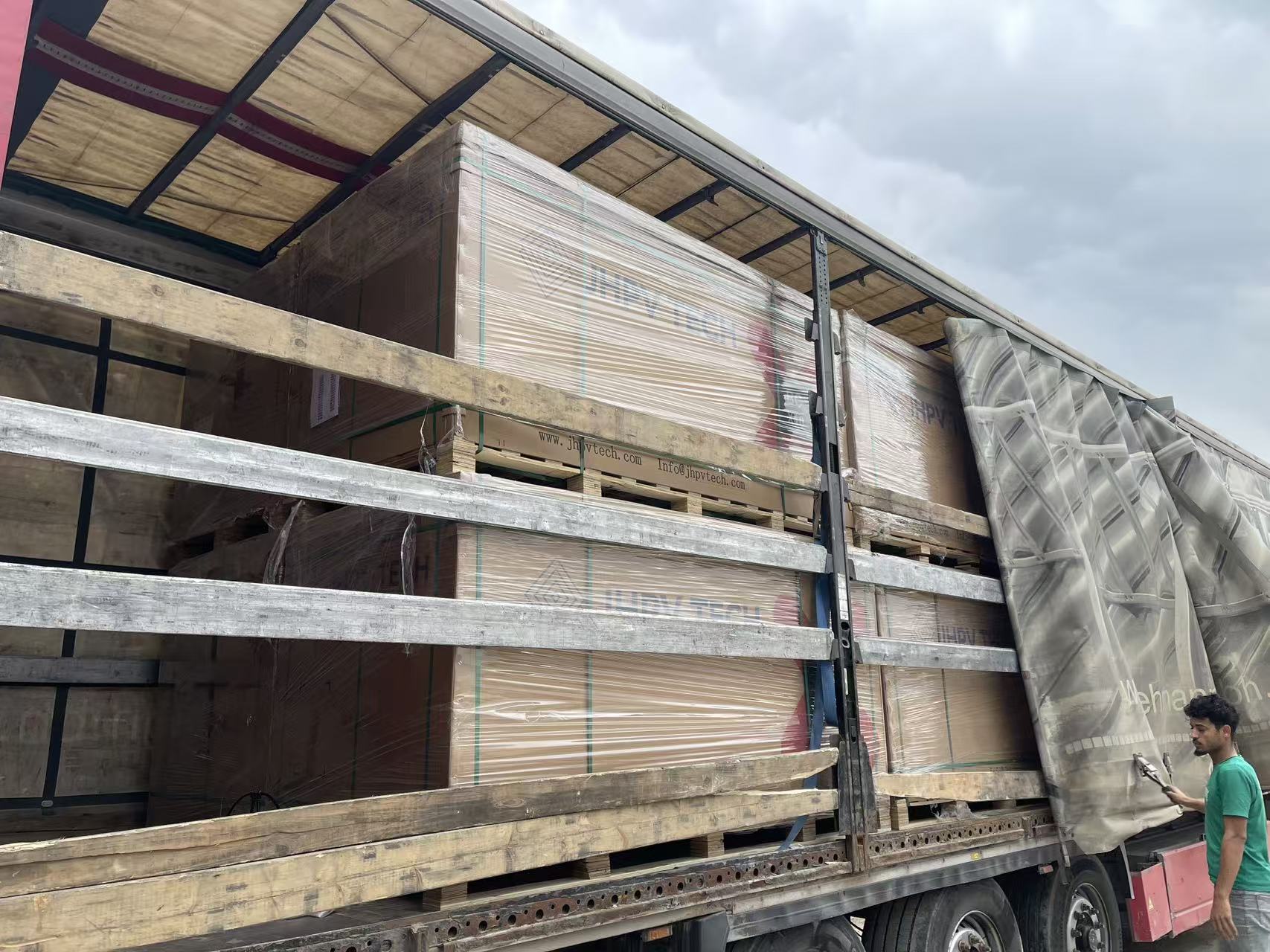 Today, solar energy equipment, symbolizing hope and cooperation, departed from a Baghdad warehouse for ESSOLAR, together illuminating Iraq’s bright future.